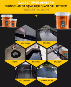 Clare Bitumen Membrain chống thấm cho sàn mái, máng nước, sàn bếp, khu vệ sinh và các kết cấu bê tông, chống thấm cho các loại tàu thuyền và chống ẩm cho tường, sàn tầng trệt.