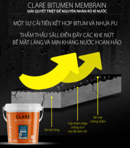 SƠN CHỐNG THẤM CLARE BITUMEN MEMBRAIN là sơn nhũ tương nhựa đường kết hợp nhựa PU biến tính cao cấp dùng để chống thấm, bảo vệ các sàn bê tông, gỗ và kim loại. Bitumen khi khô tạo thành một lớp nhựa đường màu đen không bị chảy lún, mềm dẻo và rất bền vững.